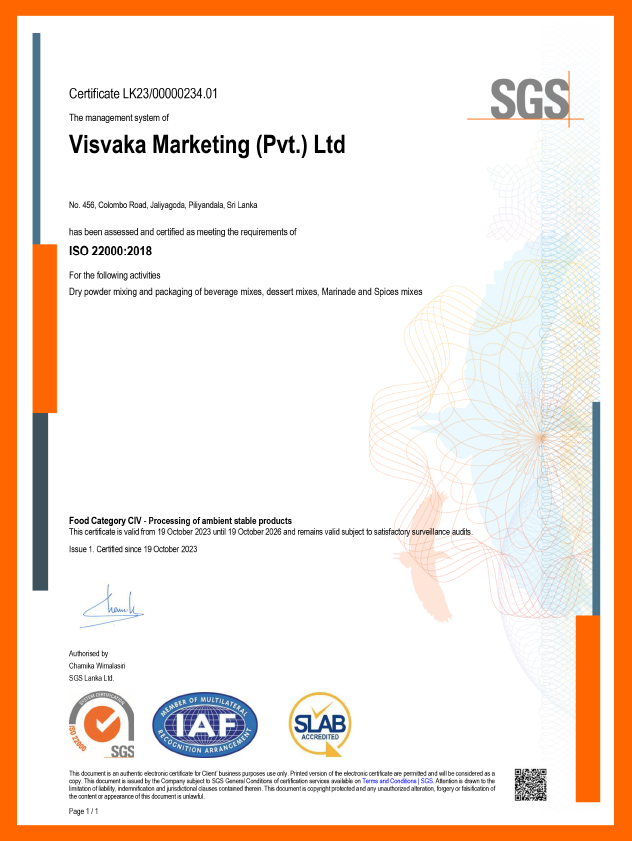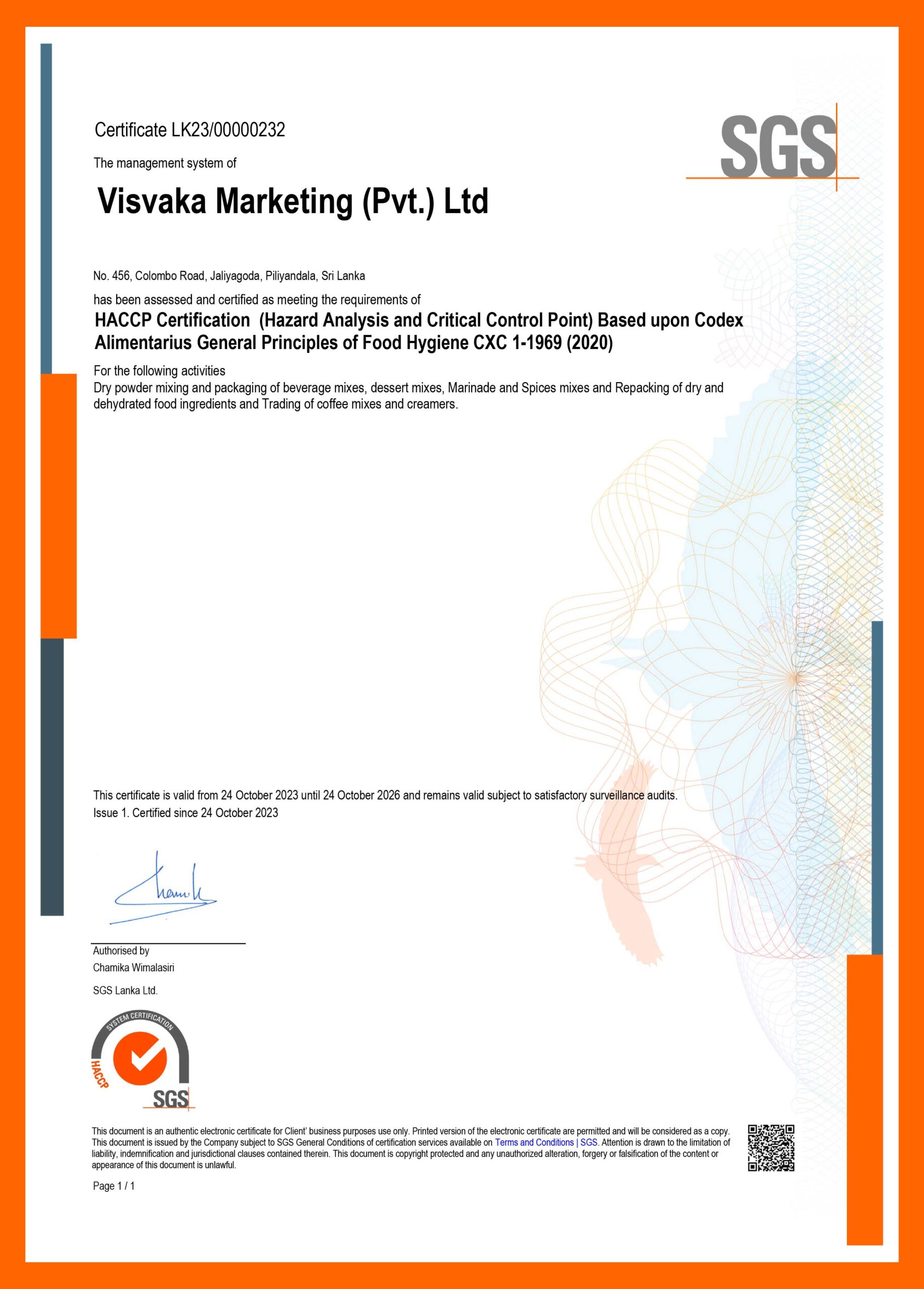 HACCP Visvaka Marketing (Pvt.) Ltd